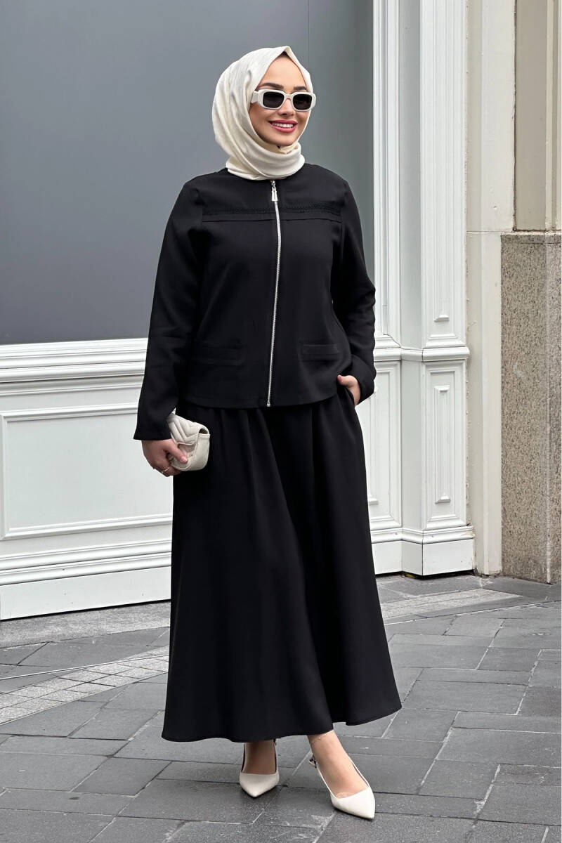 Mahza Modal Kumaş Süet Detaylı Yeni Sezon Etek Takım 8201 Siyah