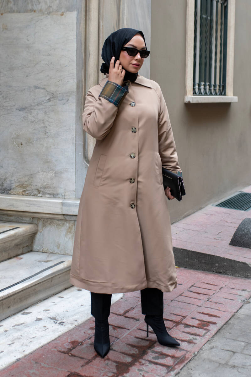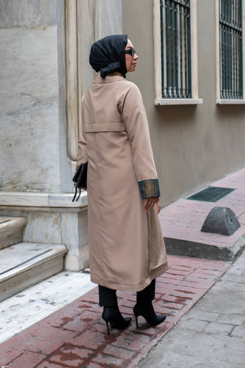 MAHZA EKOSE ASTAR DETAYLI YENİ SEZON 120 CM MEVSİMLİK TRENÇKOT 7667 CAMEL
