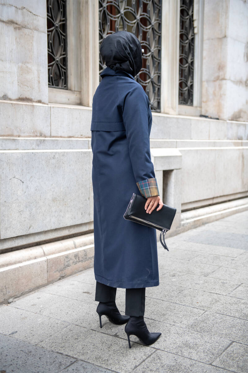 MAHZA EKOSE ASTAR DETAYLI YENİ SEZON 120 CM MEVSİMLİK TRENÇKOT 7667 LACİVERT