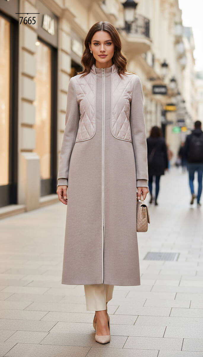Mahza Kaşe Kumaş Astarlı Kapitone Detaylı 120 cm Kaban 7665 Açık Kahve