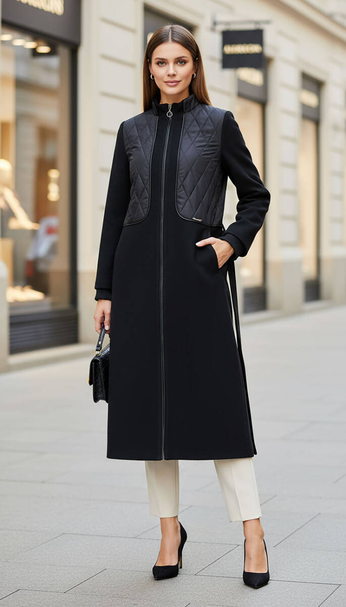 Mahza Kaşe Kumaş Astarlı Kapitone Detaylı 120 cm Kaban 7665 Siyah