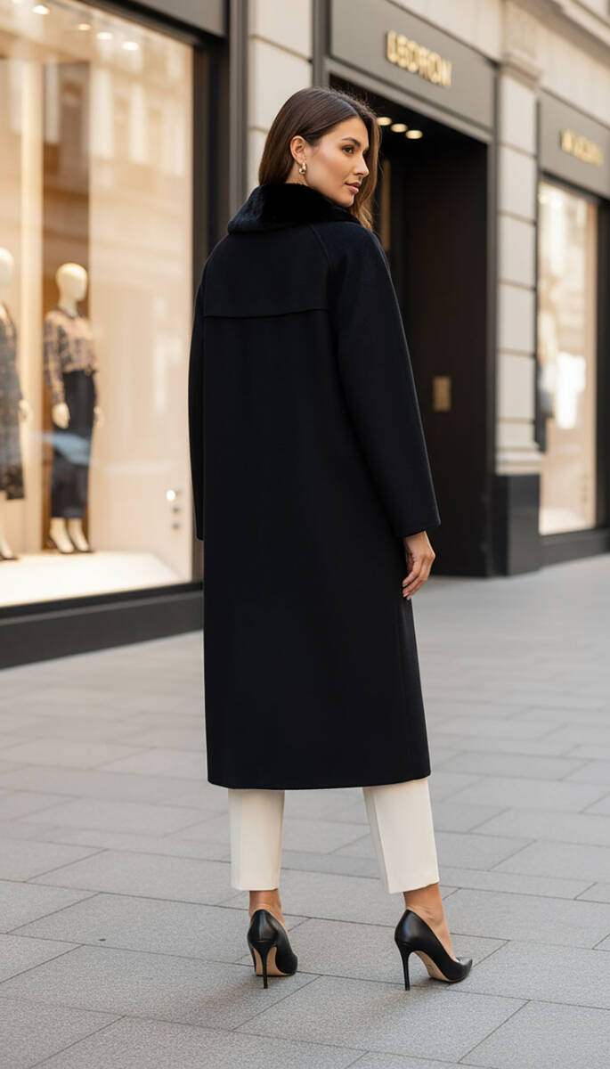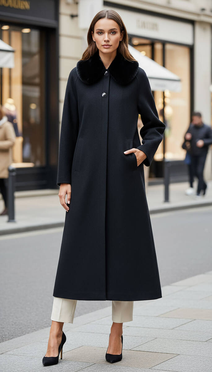 Mahza Kaşe Kumaş Astarlı Yakası Çıkarılabilir Kürklü 120 cm Kaban 7666 Siyah