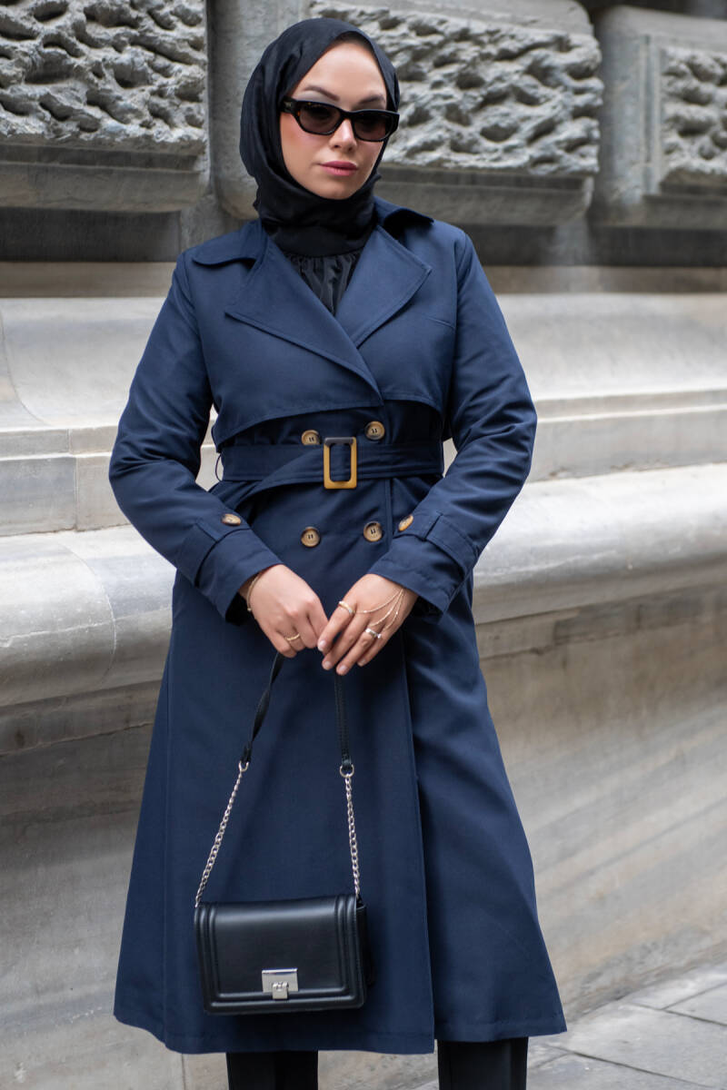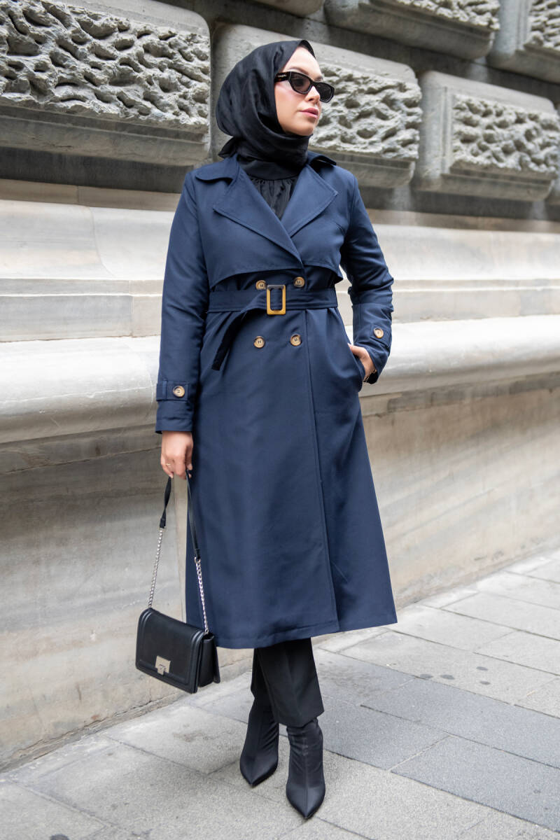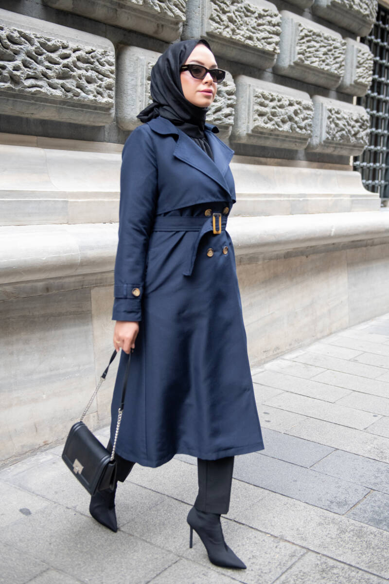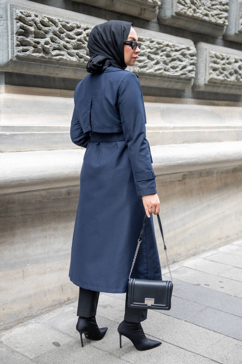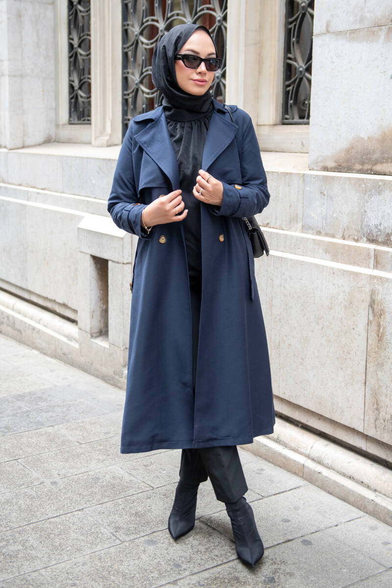 MAHZA MEVSİMLİK KLASİK 120 CM ASTARLI YENİ SEZON TRENÇKOT 7574 LACİVERT