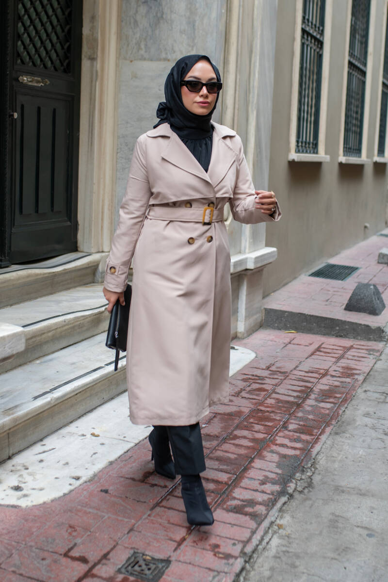 MAHZA EKOSE ASTAR DETAYLI YENİ SEZON 120 CM MEVSİMLİK TRENÇKOT 7667 BEJ