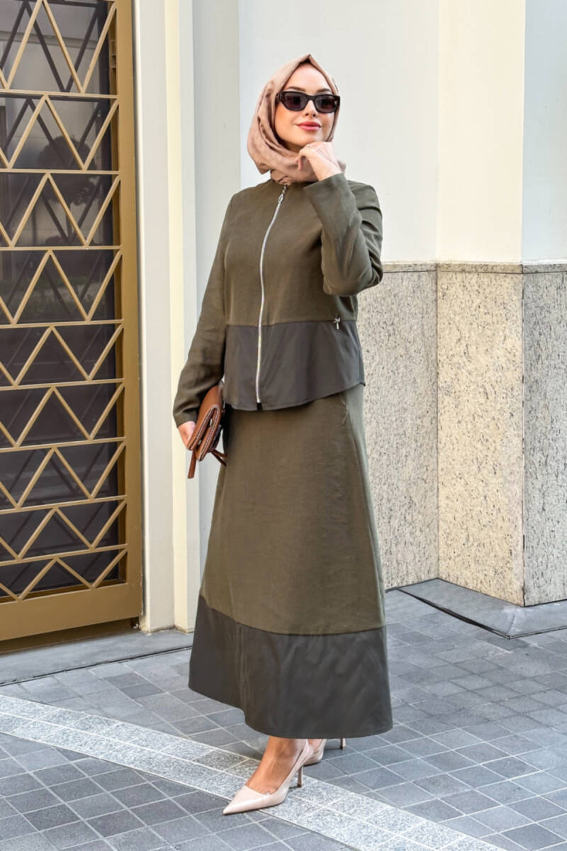 Mahza Modal Kumaş Etek Uçları Paraşüt Detaylı Premium Etek Takım 8204- Haki