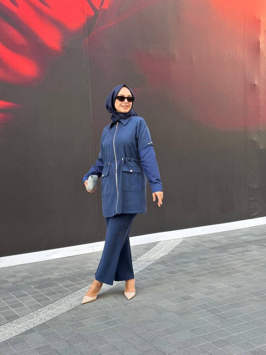Mahza Modal Kumaş Yeni Sezon Garnili Spor Pantolon Takım 8202 İndigo