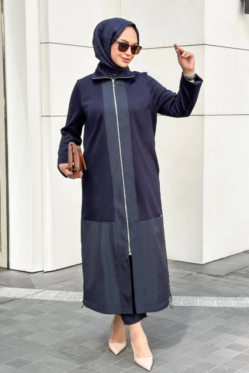 Mahza 7670 Su Geçirmez Kumaş 130 cm Çıkarılabilir Kapüşon Kolları Lastikli Mont Lacivert