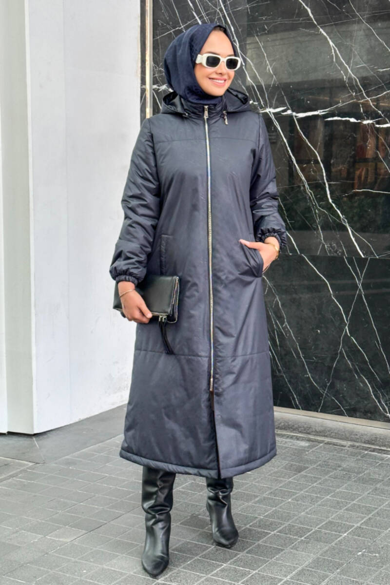 Mahza Su Geçirmez Kumaş Hafif Dokulu Kendinden Desenli Mevsimlik Mont 7653 Lacivert