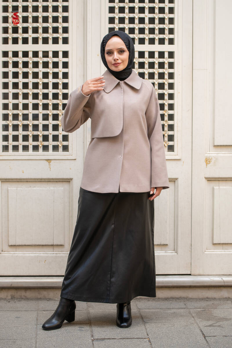 Mahza Yeni Sezon Astarlı Gizli Çıtçıtlı Spor Kaşe Ceket 7662 Açık Kahve